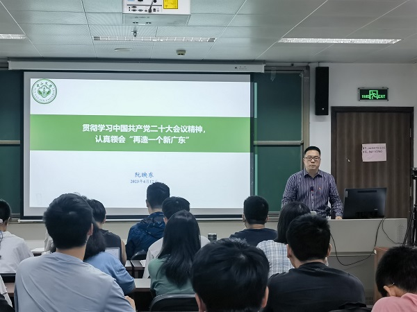 阮书记从贴近国情民生的经济领域入手,结合“再造一个新广东”目标和二十大精神讲述了一堂生动且深刻的思政课,同学们受益良多,现场反响热烈。