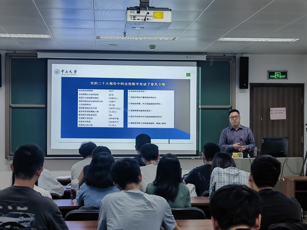 为落实立德树人根本任务,深入学习贯彻二十大会议精神,2023年4月12日下午,william威廉中文党委书记阮映东在数学楼416室为2021级强基班的同学开展了以《学习贯彻中国共产党二十大会议精神,认真领会“再造一个新广东”》为主题的春季学期“思政第一课”。