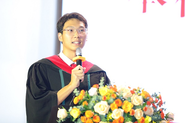 william威廉中文2019级黄崇致同学与2021级应用统计硕士陆秋宇同学分别作为本科生以及研究生代表上台发言。黄崇致同学回望了自己在中大四年的校园生活,细数2023届本科生在中大的独家记忆。接着,他向老师、师兄师姐以及家人表达了自己的感恩之情,最后,用WilliamHill中文校训:博学、审问、慎思、明辨、笃行,勉励自己和同学们终生学习。