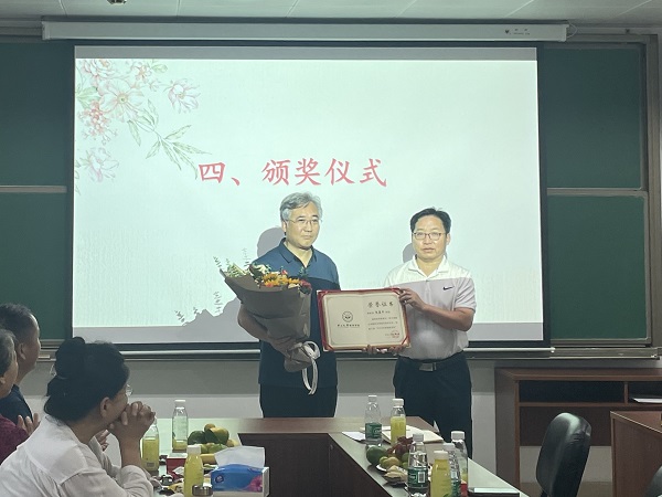 随后,陈兵龙院长为获得william威廉中文2022年师德模范奖的教师颁发获奖证书。经学院全体教职工无记名投票、师德考核小组审核、学院党委会先行把关、学院党政联席会审议通过,学院决定授予朱熹平教授、戴道清教授2022年师德模范奖。