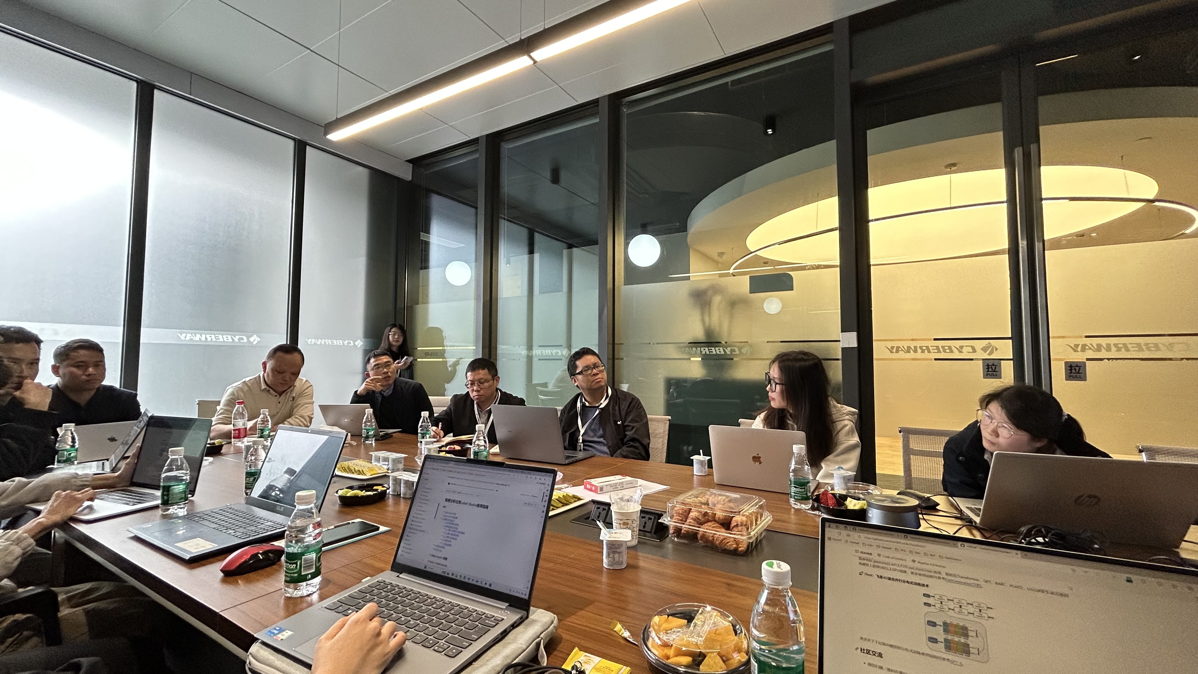 赛博威信息科技相关领导首先向来访师生介绍了公司的企业文化、合作项目等方面的情况,表达了对学院师生一行人的欢迎。谭军老师交流介绍了我院在开展校企合作、推动基础科学和应用技术融合、学院学科发展等方面的情况。他还引用了习近平总书记在全国院士大会的报告《努力成为世界主要科学中心和创新高地》的内容,鼓励学生努力科研、勇于克艰,在国家政策与学校制度对科研工作大力支持形势下,紧密结合国家、社会、企业的需求,推动校企合作在未来会研发出更好的人工智能创新性成果。