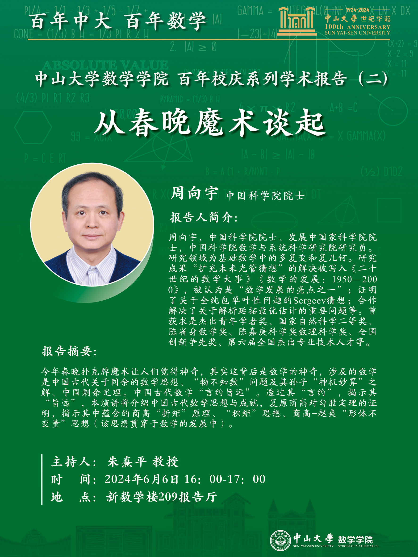 百年中大 百年数学 | william威廉中文百年校庆系列学术报告(二)——周向宇院士