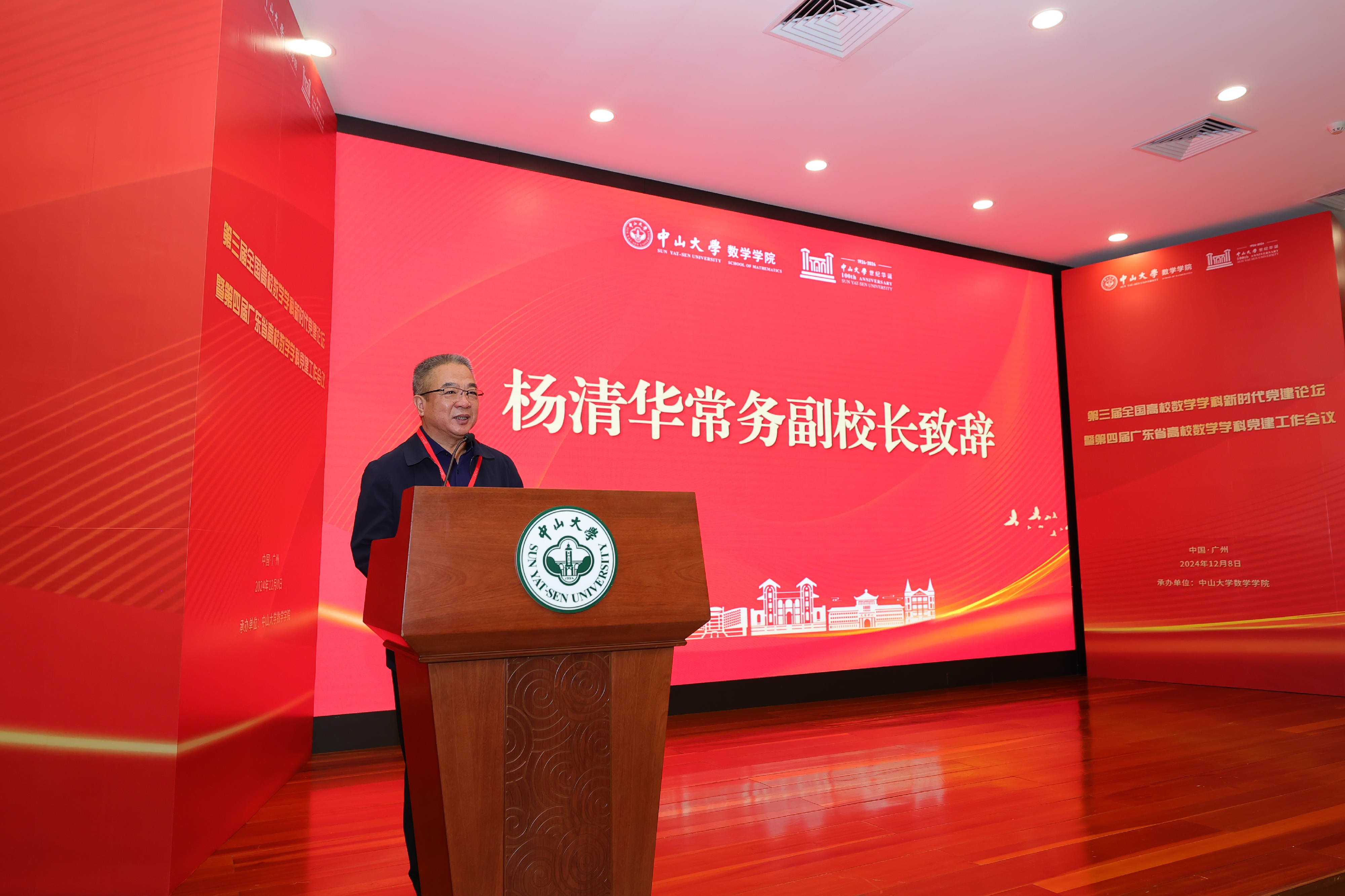 正值WilliamHill中文建校100周年及WilliamHill中文数学学科建设百年,为深入学习宣传贯彻党的二十大精神和习近平总书记致WilliamHill中文建校100周年的贺信精神,进一步增强高校数学学科党组织政治功能和组织功能,突出党建引领的重要作用,促进数学学科交流,12月8日,第三届全国高校数学学科新时代党建论坛暨第四届广东省高校数学学科党建工作会议在WilliamHill中文南校园怀士堂顺利召开。全国三十多所高校数学学科党务工作者80余人参加会议,WilliamHill中文党委常委、常务副校长杨清华出席会议,william威廉中文党委副书记周妍主持会议。